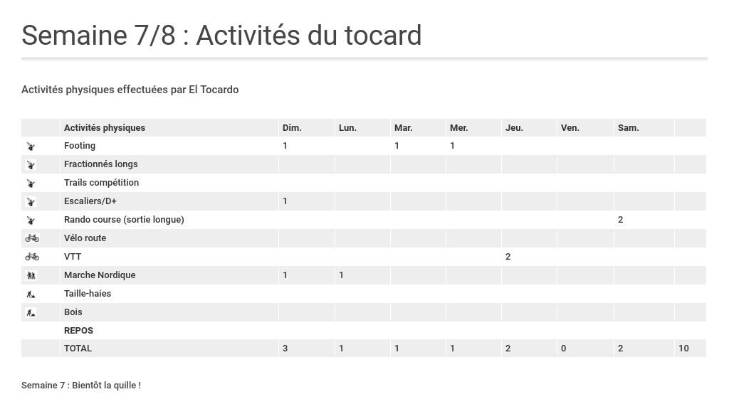 C’est toujours sympa de dégoter les plans d’entraînements de champions, voire que l’on ne sera jamais à leur niveau, et de se blesser dès que l’on fait 3 entraînements de leur plan. El Tocardo propose autre chose. Nous ne sommes pas des champions, alors les bons conseils d’aller se taper des sorties de plusieurs heures avec beaucoup de D+ tous les week-ends restera lettre morte... Adaptions les plans à notre niveau, c’est à dire, bien plus bas, au niveau du sol.